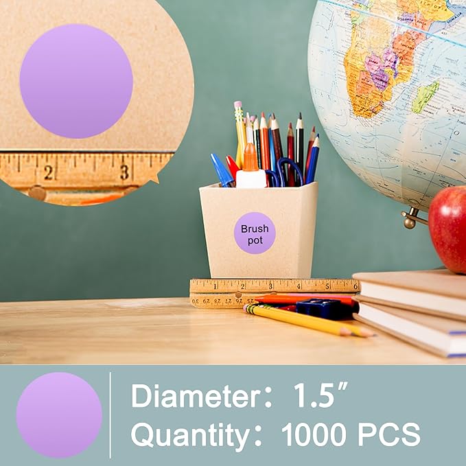 Hybsk 1.5 inch Circle Color Direct Thermal Stickers Shipping Labels for Barcodes,Name Tag,DIY Logo Design,Inventory– Compatible with Zebra,Rollo,Munbyn,and More-750 pcs (1.5 inch,Purple)