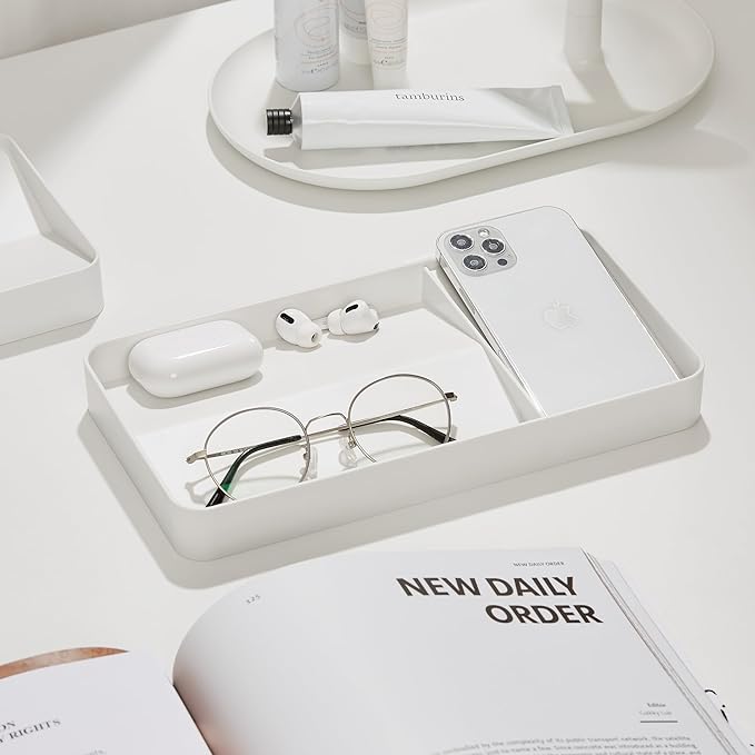 - EFFORTLESS DESK ORGANIZATION - Declutter your workspace with our stylish desktop organizer tray. Featuring a unique sloped design to keep everything easy to access, it's designed to keep your desk essentials neatly in place.