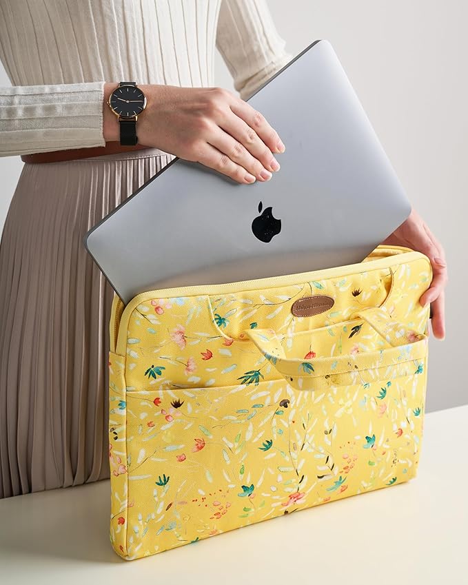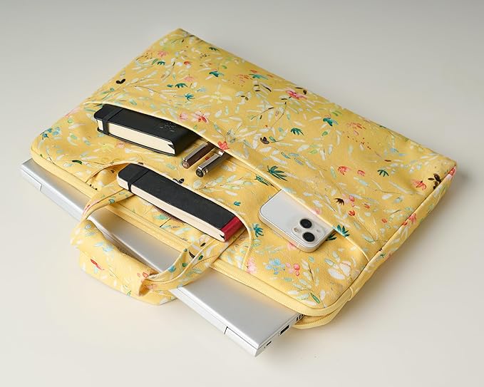 - These 100% Cotton laptop Sleeve are made of high quality canvas fabric, which is slim and spacious bags made of solid materials and eye-catching patterns. It helps to protect laptop from dreaded knocks, spills, bumps, dings and accidental scratches.