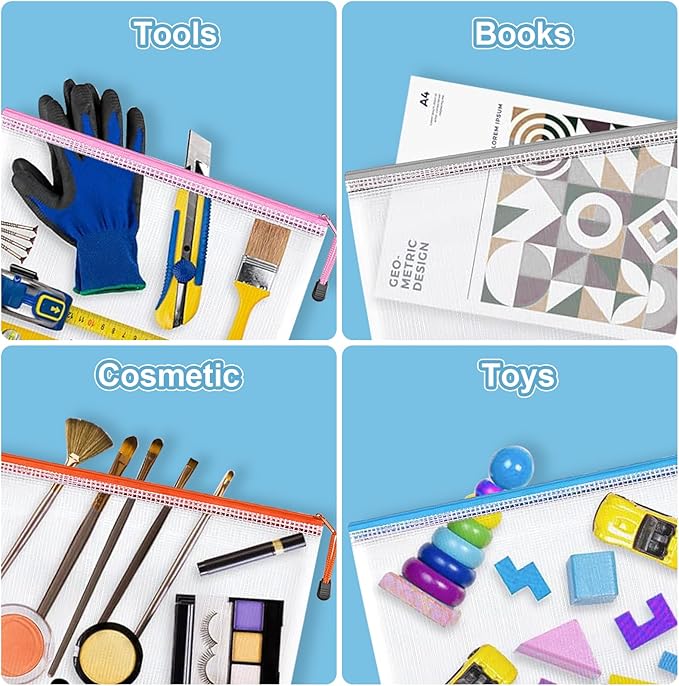- Zipper Bags are Ideal for Class Organization, Office Supplies, Puzzles, Board Game Storage, Travel Storage, Art Supplies, Cosmetics, Bills, Receipts, and More. Helping You Organize Your Documents Accurately and Efficiently, They are the Perfect Companion for Makeup Artists,Students, Office Workers and Classrooms.
