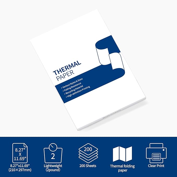 - Dimensions - The set is a4 thermal paper size, continuous, 100 sheets per pack, Hint: Only suitable for thermal printers, not for laser or inkjet printers.