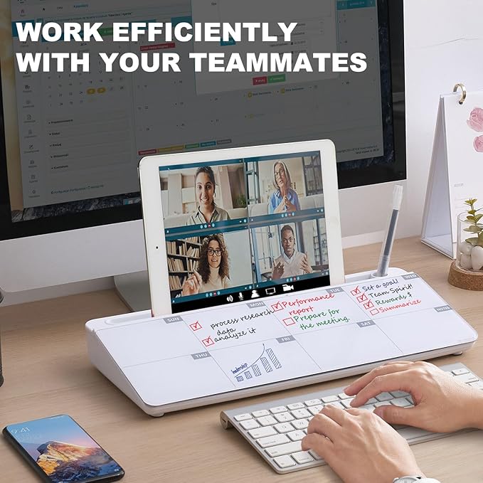 - BEST GIFT IDEA: Best Gift as a tabletop whiteboard, note taking supplies, desk to do list notepad, keyboard stand, desk organizer, memo board for Your Office, Home or Classroom! All ages will like this premium small white board. The clear desk pad brings them better organization, teaching and learning without paper large wasting.