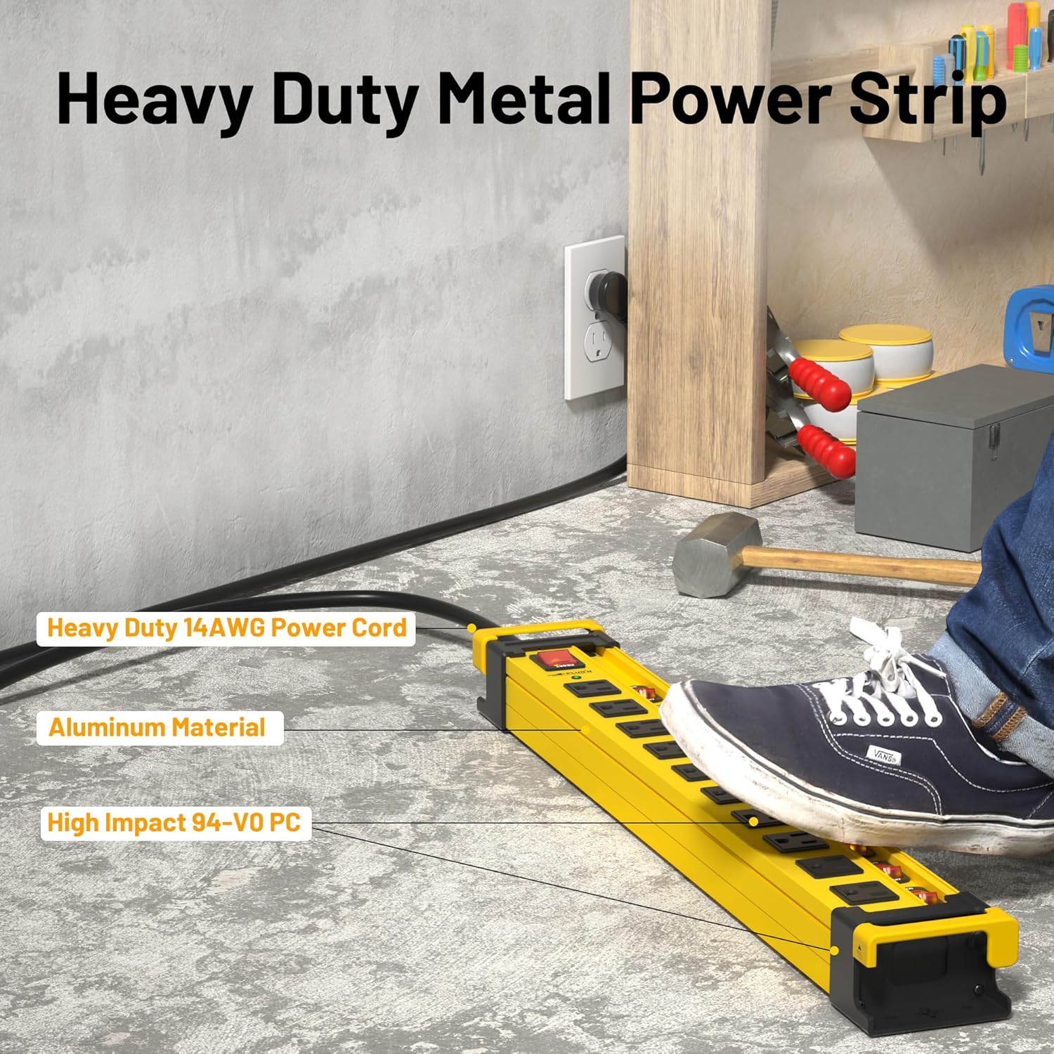 - Large Power Strip--AC 15A 125V 60HZ 1875W,Universal power strip is rugged and perfect for charging a wide range of power tools in workshop,garage,commercial,shop,home,kitchen,factory,workbench,industrial,under cabinet,warehouse and office