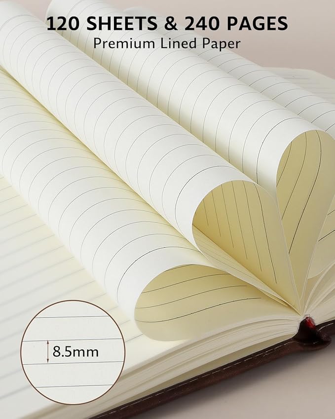 - 240 PAGES OF PREMIUM THICK PAPER: The lined journal has 120 sheets / 240 pages of lined paper, the thick paper is not easy to bleed ink, good for protecting your eyes