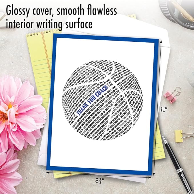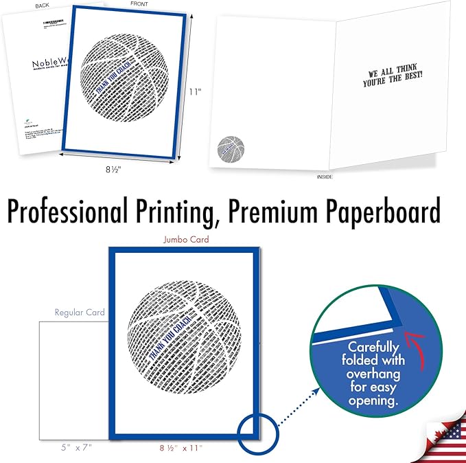 NobleWorks, Jumbo Thank You Greeting Card (Coach, Team) 8.5 x 11 Inch with Envelope (1 Pack) Large Jumbo Basketball Coach J2281ATYG-US