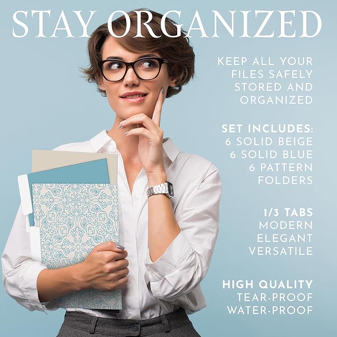 18 PCS Decorative File Folders Set, Stylish Design, Heavy Duty Letter Size Folders for Organizing Papers by Date or Day, Colorful Patterned File Folders for Home or Office Use