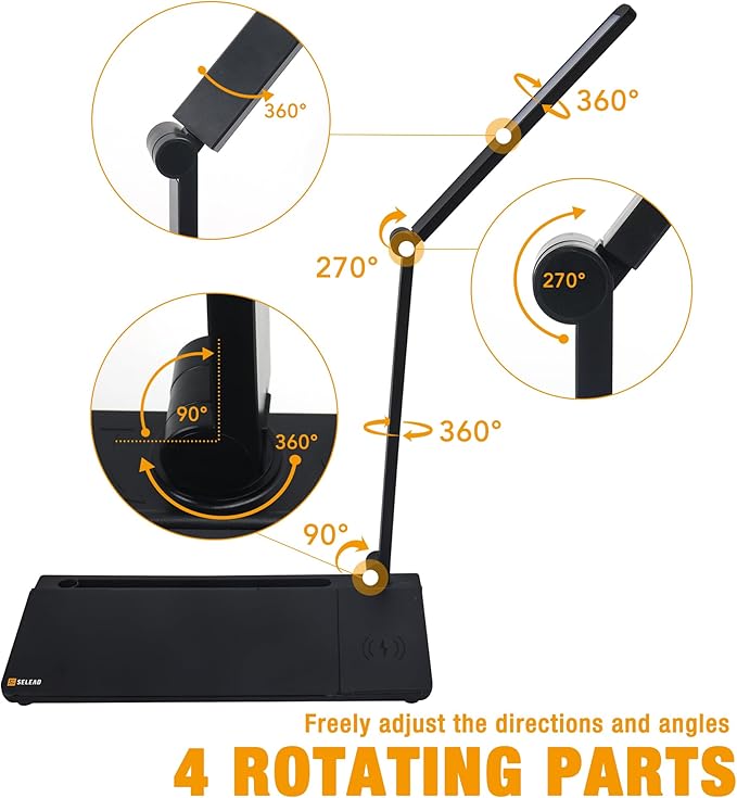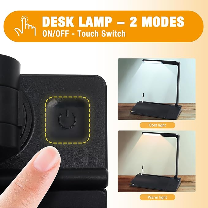 - 💡 DESK LAMP: Fingerprint touch switch, very easy to operate. It contains two modes of warm light and cold light to meet your different scenarios. 4 rotatable parts, freely adjust the directions and angles for easy use.