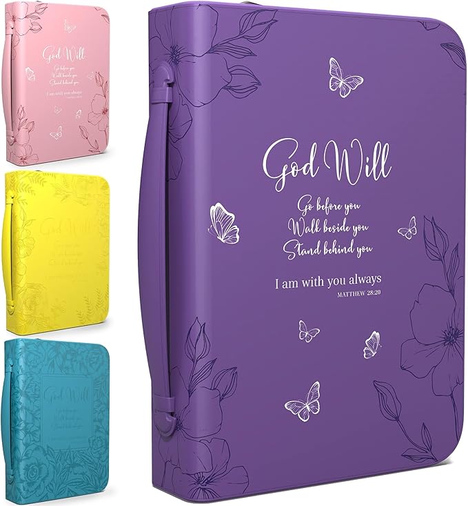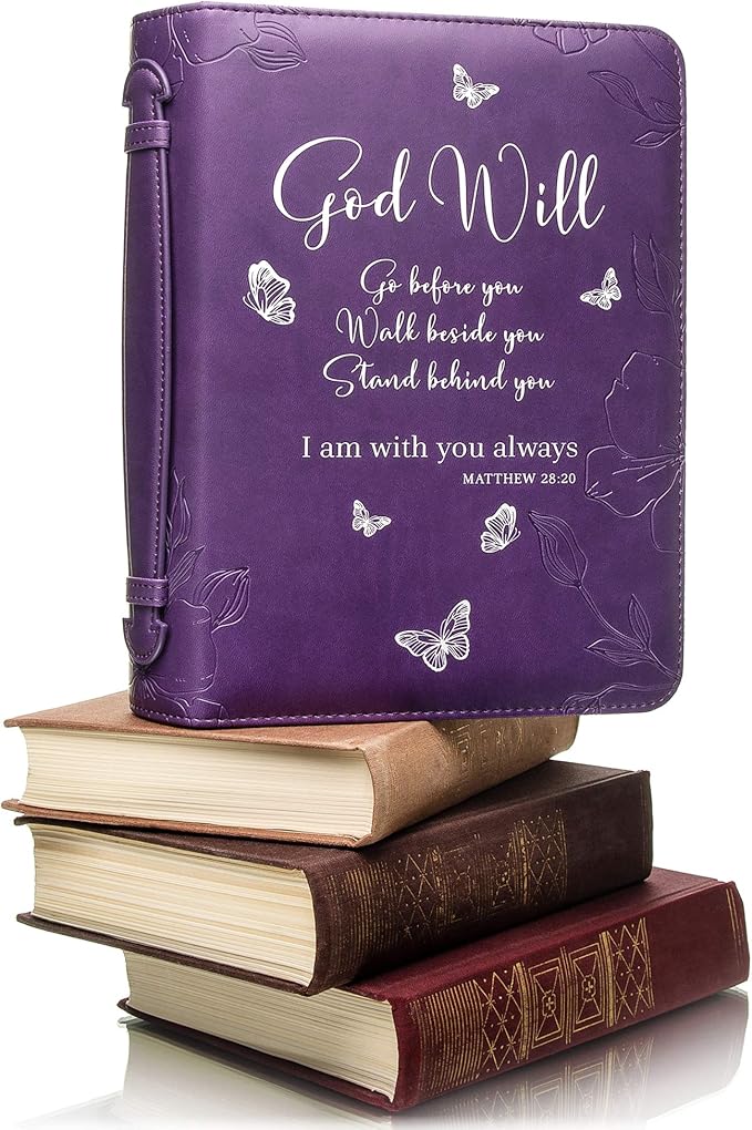- BRIEFCASE LARGE & MEDIUM SIZES: Our Purple briefcase for women measures itself 11 x 7,6 x 2.3 inches and fits book up to 7 x 10.1 x 1.9 inches; The Bible carrying case has loop inside for a pen so you can take notes as you read the Scripture