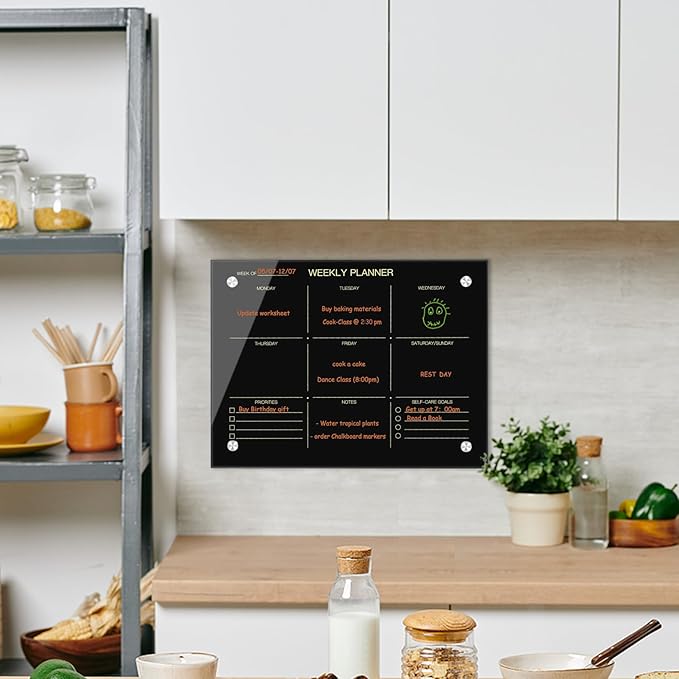 - Widely Application: This glass weekly calendar board can be used for scheduling, notes, messages, memos, calendar display and recording daily life. It is perfect for use in the office, home or any business environment