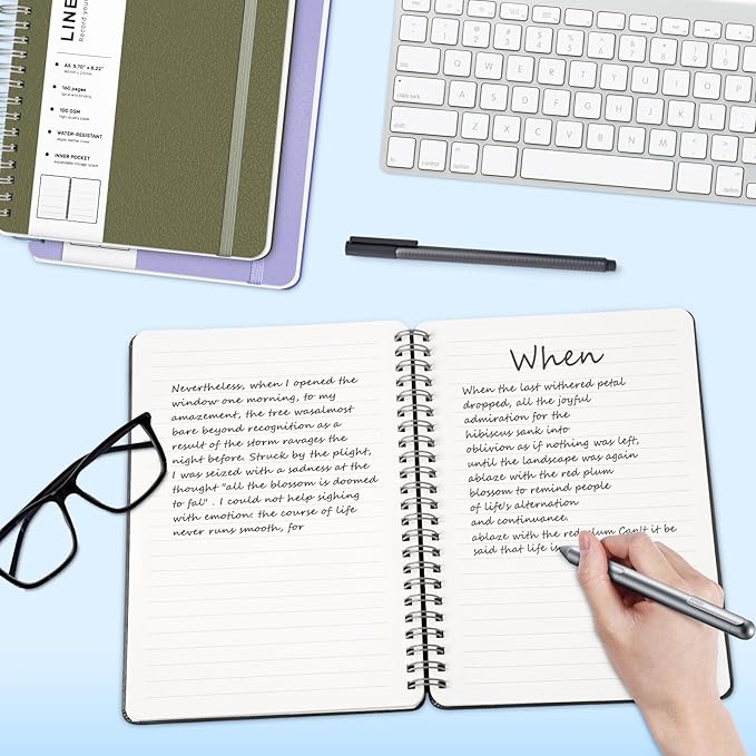 - Strong Spiral 180° Lay Flat Design - The 180° lay flat design makes writing easier, reading more convenient, and taking notes more efficient. At the same time, the hardcover notebook is designed with an elastic closure band to make it tightly closed to protect your content, and the inner paper will not be curled and kept flat. Our notebooks have perforated lines on every inside page to tear off paper easily.
