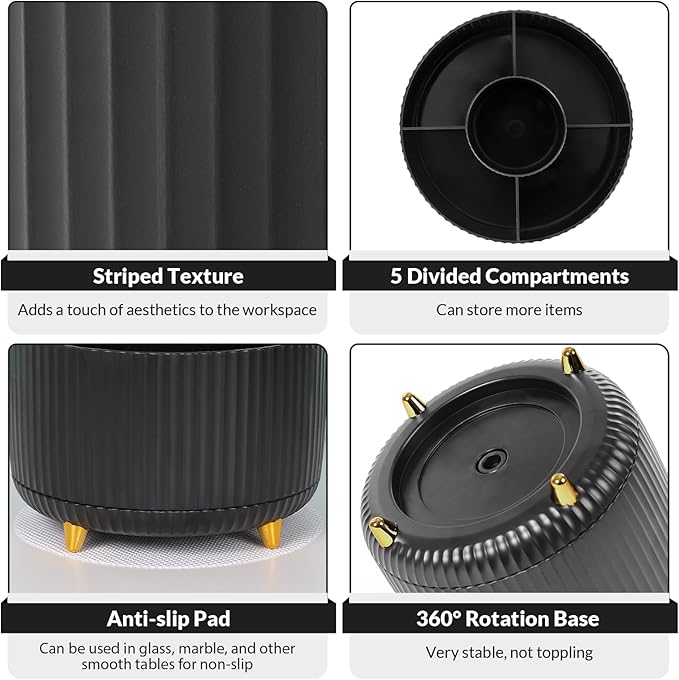 - Practical Choice: The rotating pen holder combines practicality and decoration. It keeps your workspace tidy by organizing pens, pencils, and small items, while its stylish design adds a decorative touch, making it both functional and visually appealing