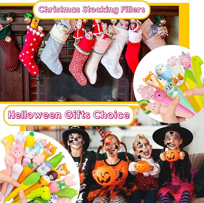 - Great Gift Choice: A perfect stress relief gift. These cute pens make great gifts for teachers, students, engineers, doctors, lawyers, designers, and other professionals, especially during the school season, Easter,Birthdays, Christmas, Valentine's Day, Thanksgiving Day, etc. They're sure to be loved as fidget pens, cool pens, cute pens, squishy pens, funny pens, and kawaii pens