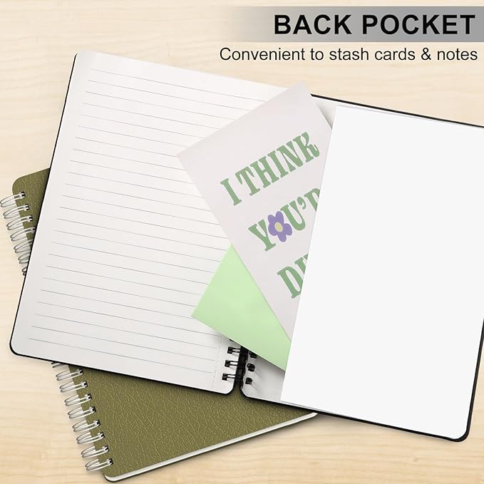 - Sturdy Spiral Twin-wire Binding & Inner Pocker: Feature a sturdy double spiral coil binding, the journaling notebooks are easy to flip the pages, flat and fold. Perforated inside pages allow to tear off unwanted pages. The back cover of the notebook journal includes an expandable pocket to store small objects. The elastic band on the outside of the lined notebook can also help you fix and mark pages perfectly. Perfect spiral bound journal notebooks for work, college supplies.