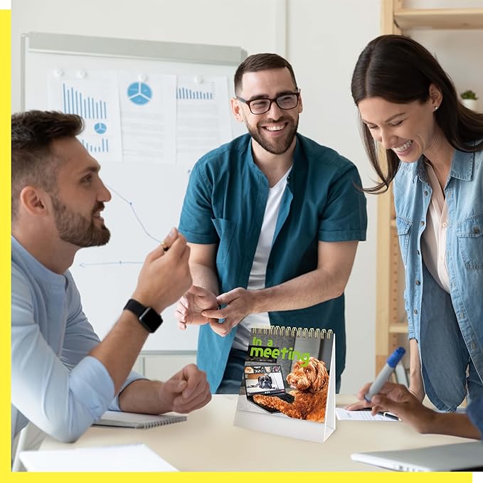 40 Pages Funny Desk Sign, 34 Different Fun and Flip-Over Messages plus 6 Erasable Blank Pages, Funny Desktop Flip Book for Office Gifts Desk Accessories (Dog Design)