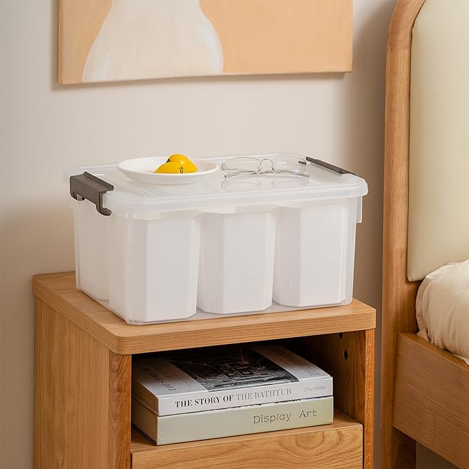 - 【Durable Construction】Including 2 storage bin and 6 inserts. This box measurement is 15.94"L x 11.61"W x 7.28"H/17 quarts. Single insert measurement: 5.12"L x 4.72"W x 5.71"H/1.7 QT. Made of premium durable and thicker PP5 plastic so you don't have to worry about chipping. This can make it last a lifetime. odor-free, and BPA-free.