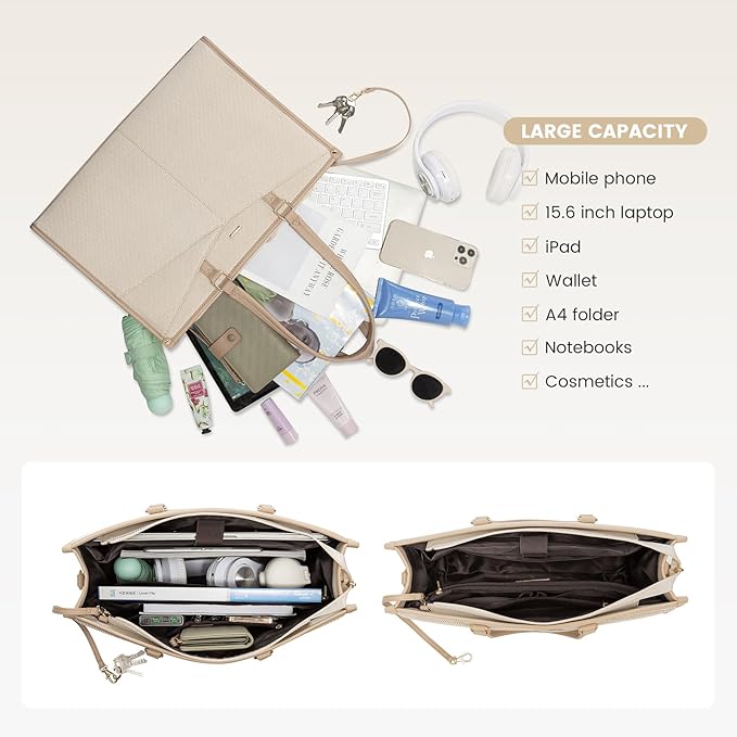 - Large Capacity Laptop Bag for Women: Spacious Fashion Laptop Bag designed specifically for women, Suitable for 15.6 inch and smaller Laptop. Thickened soft protective foam pad, velcro strap secure to fully protect your laptop and tablet. The size is perfect for your laptop and all the essential that you need throughout the day.