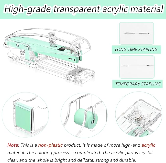 - Package&Size: 9pc green office supplies set; a desk organizer:8.6"x5.9"x5.9", a tape dispenser:4.7"x1.3"x2.5", a stapler:6.2"x1.3"x2.5", a ballpoint pen:5.6", a scissor:6.2"x2.4", a 4-grid clip set:3.9"(including 30 paper clips:1.1"x0.3", 7 large binder clips:1.3"x0.7", 13 small binder binders:1"x0.6", 20 thumbtacks:1"), a ruler:7.8"x1.1", 200pcs sticky tabs and 1000pcs staples. A GREAT IDEA for Christmas gifts, Thanksgiving gifts, party gifts, birthday gifts, back to school gifts.