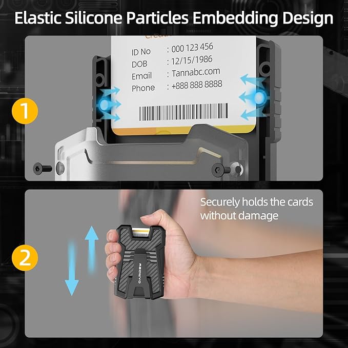 - Innovative Card Fixing Structure: With two embedded elastic silicone grains, our heavy-duty card holder securely holds your cards in place, offering maximum protection.