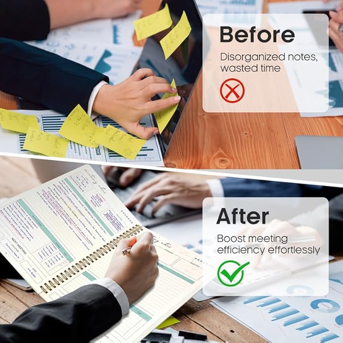- Your Versatile Meeting Partner - Our daily notebook for work is a versatile companion. Executives, project managers, team leaders, students—everyone benefits from its efficient organization and note-taking prowess. It's not just a meeting planner for work; it's an indispensable office supplies for anyone seeking to enhance their meeting productivity.