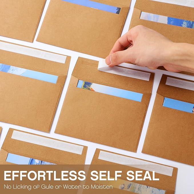 - Easy to Apply: brown A2 invitation envelopes are equipped with separate tapes; Just tear up the protective strip, press and stick without needing water and glue, which is easy to apply; Kraft envelopes have good adhesion to prevent the contents from falling out during transiting
