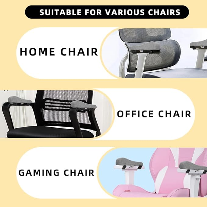 - ERGONOMIC CHAIR ARM PILLOW:Our memory foam arm pads With a unique curved design to better fit your elbow/forearm/arm, relieving pressure and pain and providing extra support, which can relieve pressure between your arm and elbow by providing cushion, creating a comfortable base for your arms to rest easy while working.