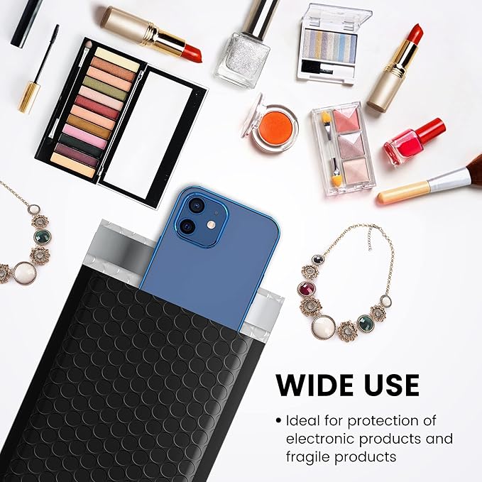 - Black Bubble Mailers #000: The Outer size is 4x8 inch, while the inner size is 4x7 inch. Suitable to transport for jewellery, makeup, cards, phone case, Lips, photos,handcraft and more. Great for small business packing,shipping gifts mailer.