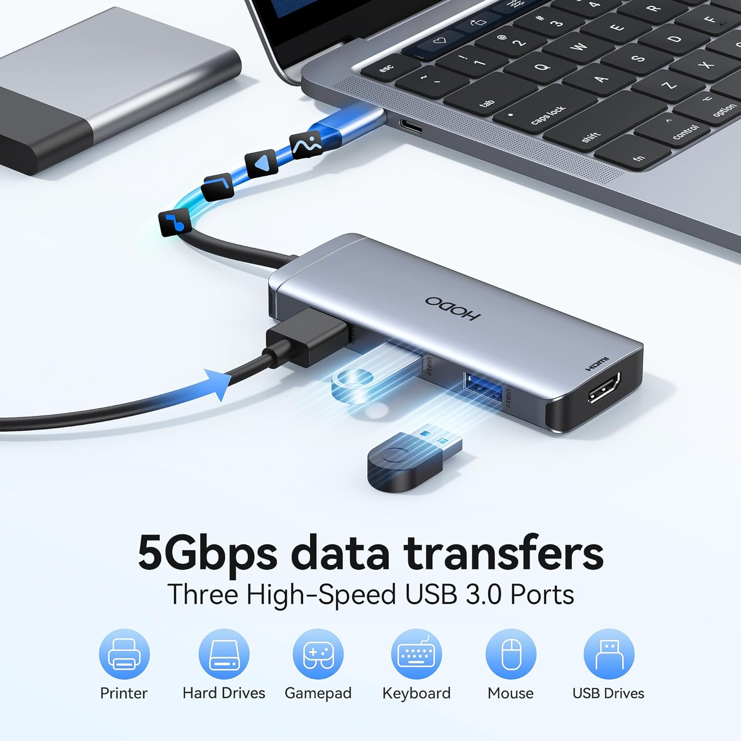 - 3 Super Speed USB 3.0 Ports: This USB C Macbook Air Dongle comes with three super speed usb 3.0 ports transfer data up to 5Gbps, support usb keyboard, mouse, usb driver, usb hard disks