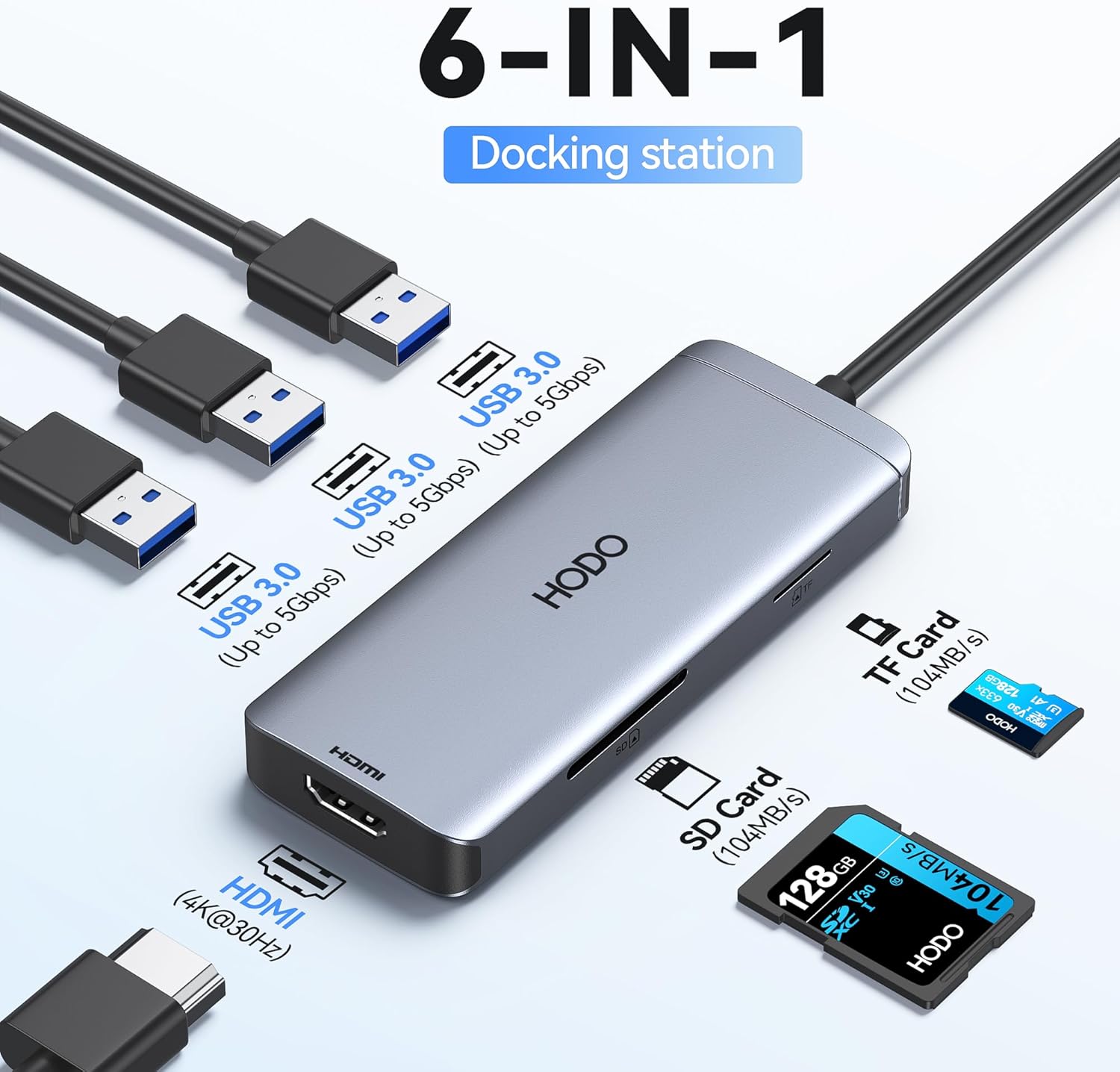 USB-C Hub Multiport Adapter for MacBook Air/Pro - 6 in 1 HDMI Dongle with 4K, USB 3.0 Ports, SD/TF Card Reader for MacBook m1/m2/m3/m4, Dell XPS, HP, Lenovo, Surface and Other Type-C Devices