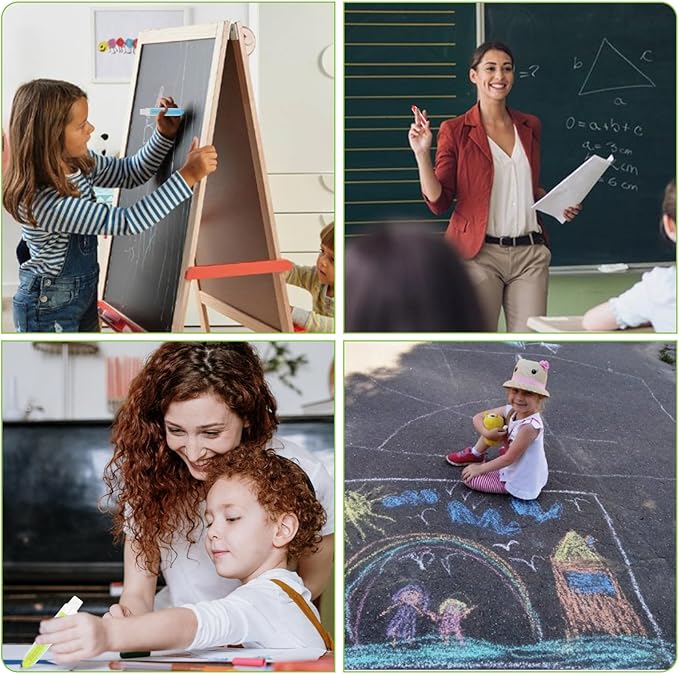 - WIDELY APPLIED: These dustless chalk for kids are commonly used in the field of life and work, suitable for a variety of object surfaces, such as glass, walls, floors, fabrics, chalkboards, etc., loved by students, teachers, office workers, chalk for chalkboard chalk and eraser set is also a must-purchase teaching tool for schools!