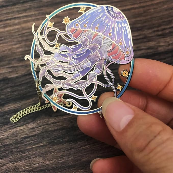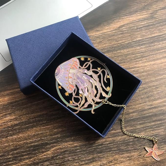 Bookmarks for Book Lovers Book Marks for Reading Women Birthday Graduation Christmas Gifts for Her Cute Metal Bookmark Book Markers Stocking Stuffers for Teens (Jellyfish-A)