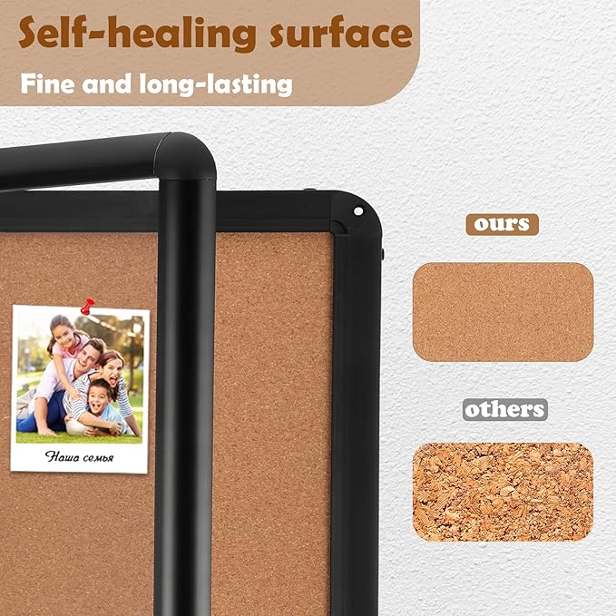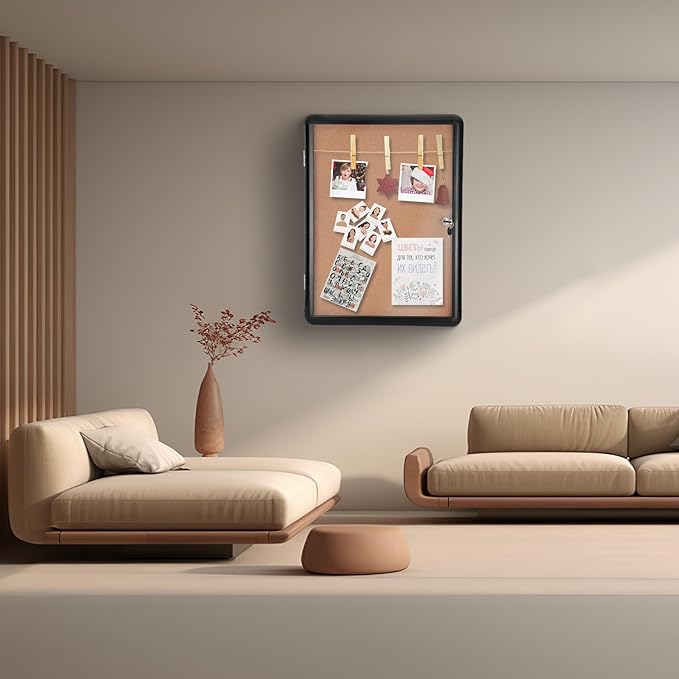 - ECO-FRIENDLY MATERIAL: Enclosed Bulletin Board made of soft, resilient, and self-healing Natural Cork that can withstand repeated use of pins or Velcro without distortion.