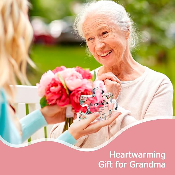 - 💞 A Classic Gift Your Grandma Will Adore: our engraved acrylic puzzle pieces boast a classic clear look with elegant floral details that will match your grandma's aesthetic, adding a sophisticated touch to her bedroom or living room decor.