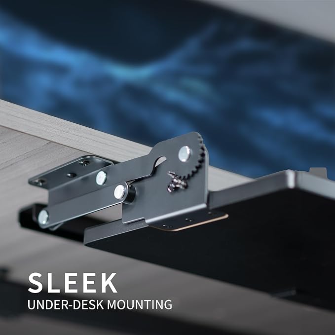 - Simple Assembly Process - Mounting hardware is provided for fast and easy assembly and installation. The minimum recommended desktop thickness is 0.75”, and the mounting bracket requires 4” of clearance under your table surface.