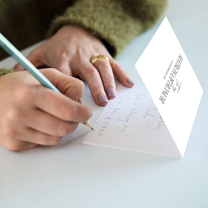 - BRIDESMAID PROPOSAL CARDS: Each set contains "To My Matron of Honor On Our Wedding Day" card with matching envelopes.