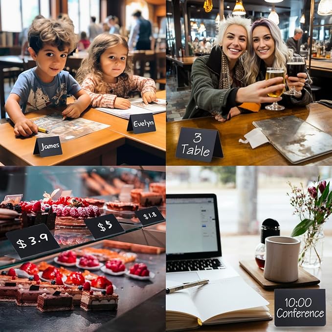- 【Versatile Signage Solution】These mini chalkboard signs are ideal for a variety of uses. Use them to label food items on your buffet or dessert table, create charming table signs with guest names or messages, or add a personal touch to your bakery displays, these chalkboard signs are so much functional.