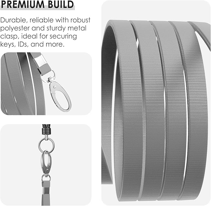 10 Pack Lanyards for ID Badges, Cruise Ship Cards, Keys, Keychain, Long-lasting Neck lanyard Strap with Clasp, Cruise Badge Key Lanyards for Men, Women, Teachers, Kids (Grey)