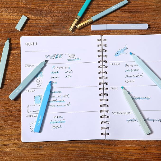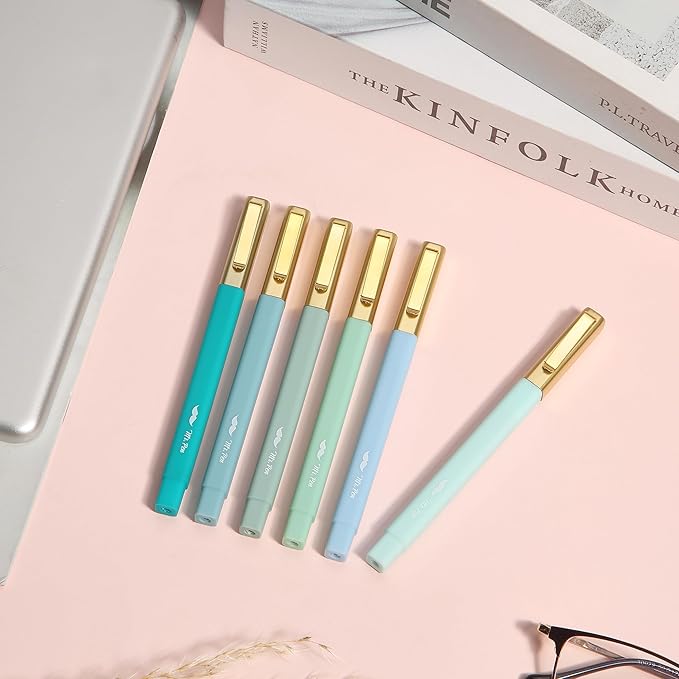 - Package includes 6 highlighters in a delightful assortment of non-neon, soft, and beautiful colors and 6 ballpoint pens in black ink, offering a versatile and coordinated set for all your writing and highlighting needs.