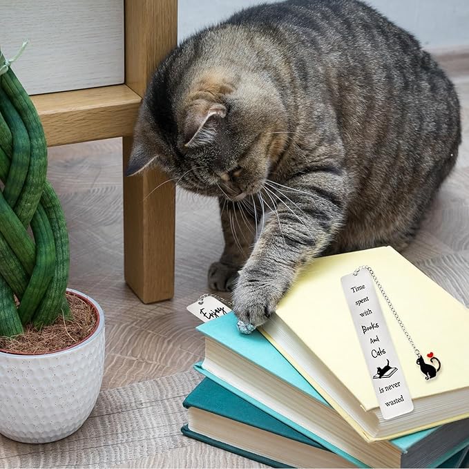 Jeffdad 2 Pcs Kitty Inspirational Words Bookmarks Funny Bookmarks Book Marker for Birthday Gifts Stainless Steel Bookmarks for Book Lovers Kids Teachers Friends Women Men (Type one)
