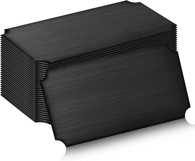 Therwen 30 Pcs Name Plates Laser Engraved Brushed Stainless Steel Plate Personalized Plaque Blank Custom Name Tag Frame Label with Adhesive Backing(Black Notched Corner,4''x 2'')