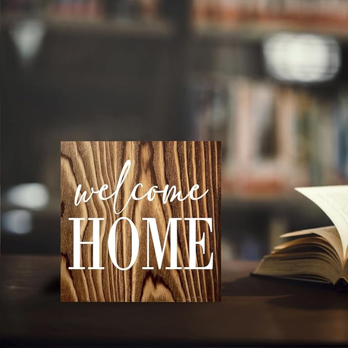 Welcome Home Sign Home Decor Desk Decor Wooden Box Sign Rustic Wood Block Plaque Box Sign for Women Family Friends Farmhouse Living Room Kitchen Bedroom Shelf Table Decoration Roasted Color