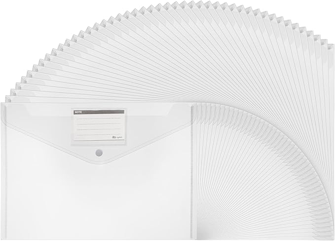 - 【Transparent Document Folders】 48 Clear plastic envelopes with button closure,you can see what’s in them easily without opening.Enough quantity to organize your files to meet your daily needs, you can also share with your friends and colleagues.