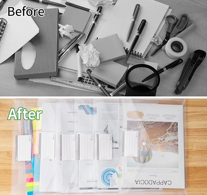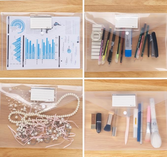 - 【Organizing Folders with Label Pocket 】Our professional plastic envelopes have a pocket for labels to distinguish documents Easily,A4 pocket folders keeps your items organized for school, home, work, office, travel and business trip.