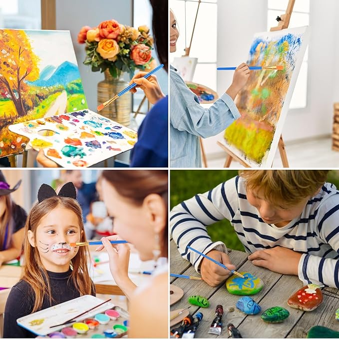 - 【Applicable scene】:This paint brush is suitable for all media including acrylic, watercolor, enamel, oil paint, vinyl, and watercolor pigments, suitable for painting on models, rocks, ceramics, leather, gypsum, etc.professional paint brushes can be used in paintings such as oil painting, watercolor, acrylic painting, human body, plants, miniature, models, ceramics, and arts and crafts.