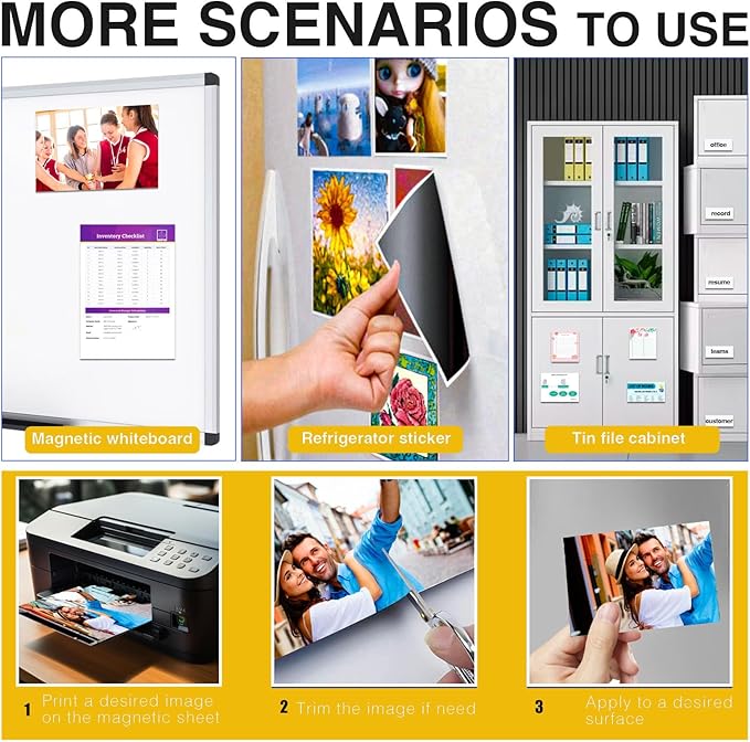 - ⭐Note:Matte printable magnetic paper that is not waterproof,please use it indoors.which is compatible with most inkjet printers,but only works fine with DYE ink.