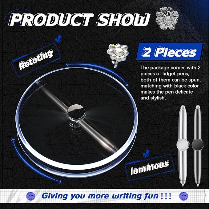 - Wide Applications: the LED light fidget pen can not only be applied as ordinary writing pens, mini flashlight and fun fidget pens, the 3-in-1 functional pens will give you endless fun, besides, they also can be applied as anxiety relief pens to release your working or study pressure, suitable for home, office and school, can be applied as nice gifts to send students, teachers, colleagues and more