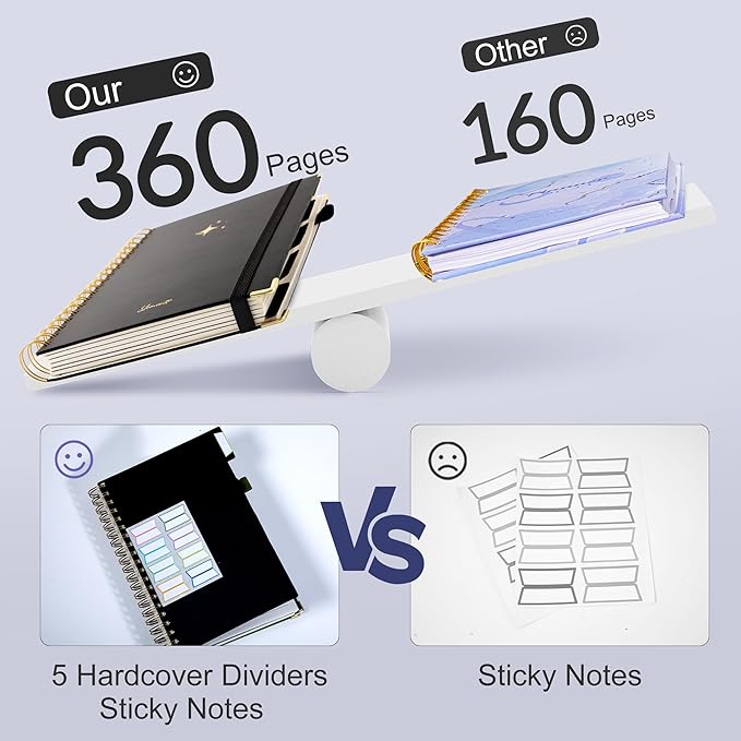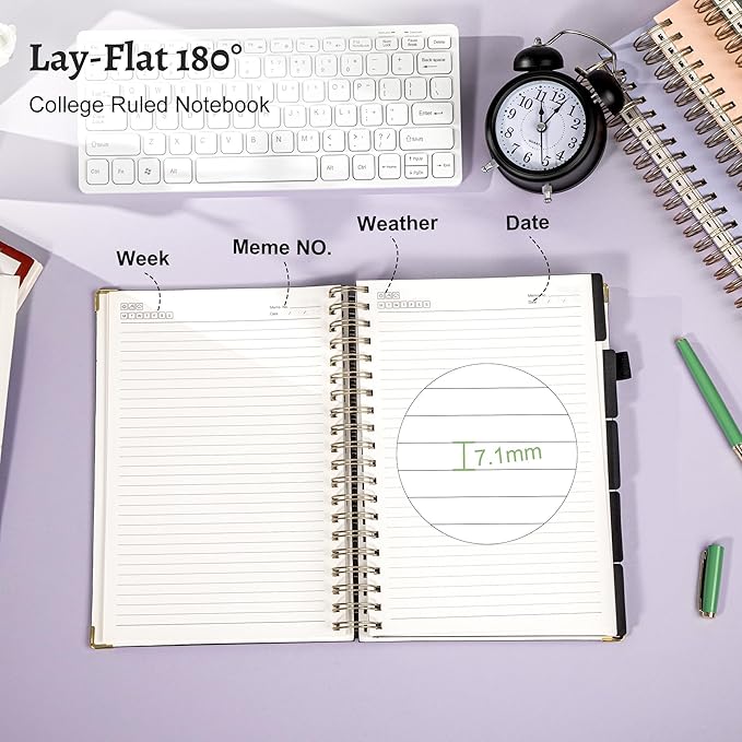 - 360 Pages Thick Spiral Journal: 7.3"x10.4", b5 size with 180 sheets/360 pages college ruled paper to last over whole year, and acid-free paper avoids yellow over time. “Weather”, “Week”, “Memo No” and “Date” are at the top of each page for classification and reference.