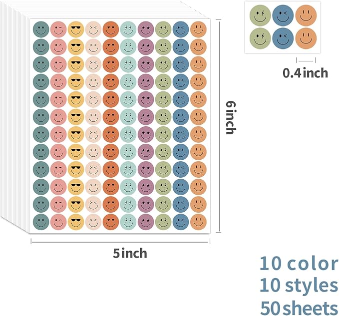 - ※【You will get 】6000 pieces (50 sheets) boho smile face stickers in total. and there are 120 pieces in each sheet with 10 kinds of color. enough to meet your needs.