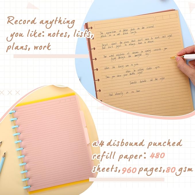 - Abundant Value Pack: you will receive 480 sheets of colored discbound refill paper, in 12 different colors, each with dimensions of about 8.5 x 11 inches, suitable for everyday study or work needs, our paper not only adds a pop of color but caters to volume demands effectively
