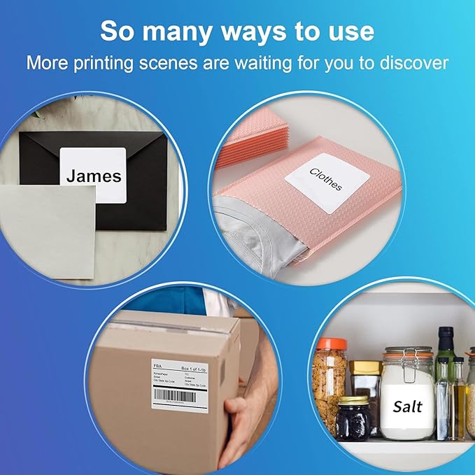 - Easy to Peel & White Matte : High quality blank white labels stickers provide clear and easy-to-read printing, you will find labels produces sharp text and rich colors, not fade. The matte surface allows you to easily distinguish the front and back. Easy to peel off design, just bend the corner of the paper slightly to peel off the label, and then stick the label on the surface you want to mark.