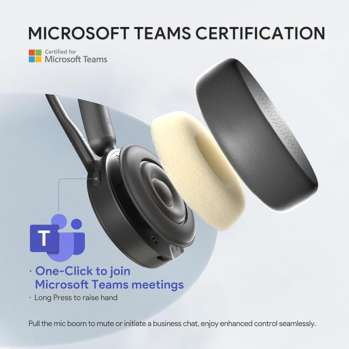 - Teams Certification ▶ Yealink has always maintained close cooperation with Microsoft. This new BH70 headset has been certified by Microsoft Teams, and you can join Teams meetings with one click on the headset to ensure that you can enjoy the original experience of Teams seamlessly during your work. When users make a call or attend a meeting, the visibility indicators of the BH70 automatically glow red to reduce external interference and allow users to focus on the conversation.